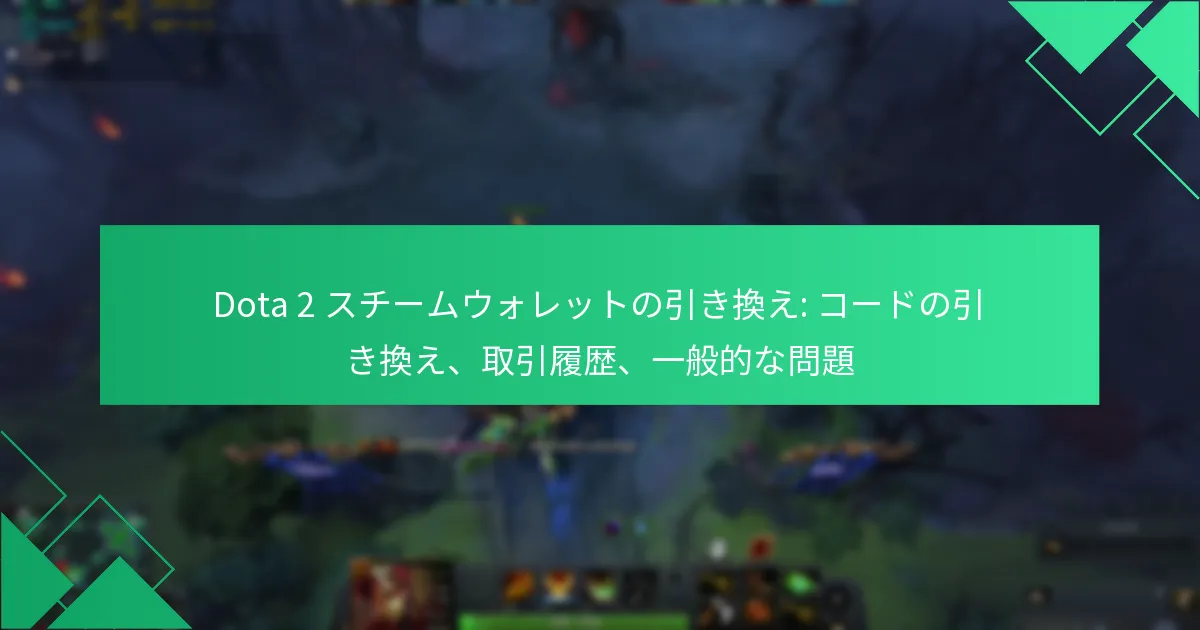 Dota 2のSteamウォレット引き換えプロセスでは、プレイヤーがコードをSteamウォレットの資金に変換でき、これを使用してゲーム内アイテムや他のゲームを購入できます。このプロセスには、コードの入力、アカウントのリンク、および引き換えたいアイテムの適格性の確認が含まれます。